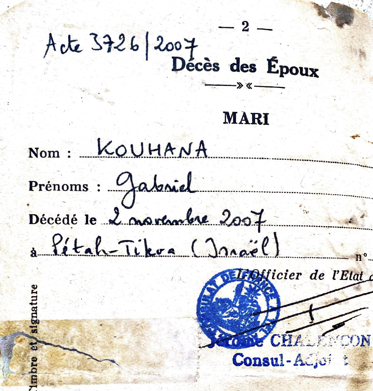 | Individus : COHANA PARTOUCHE Haim |