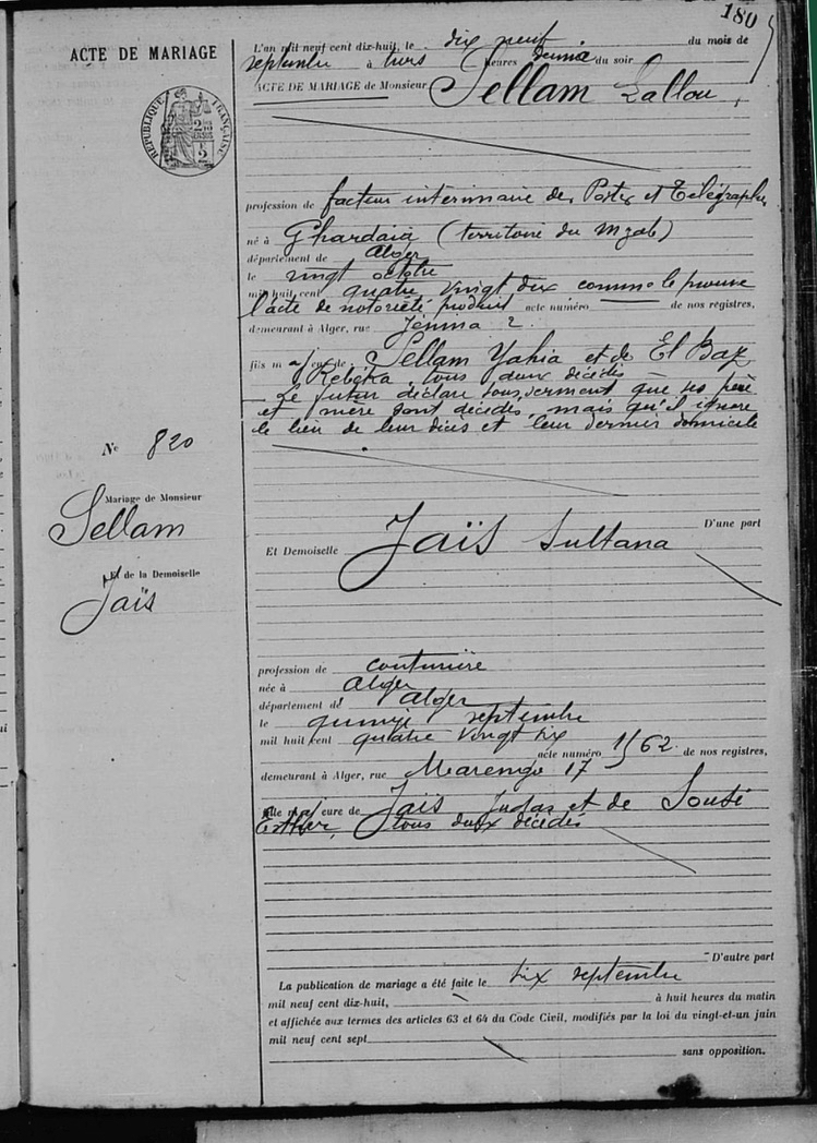 | Individus : SELLAM (BEN-DINA) Aziza Elise |