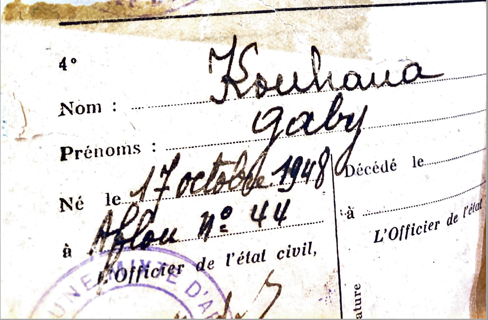 | Individus : COHANA Marinette Miriam |
