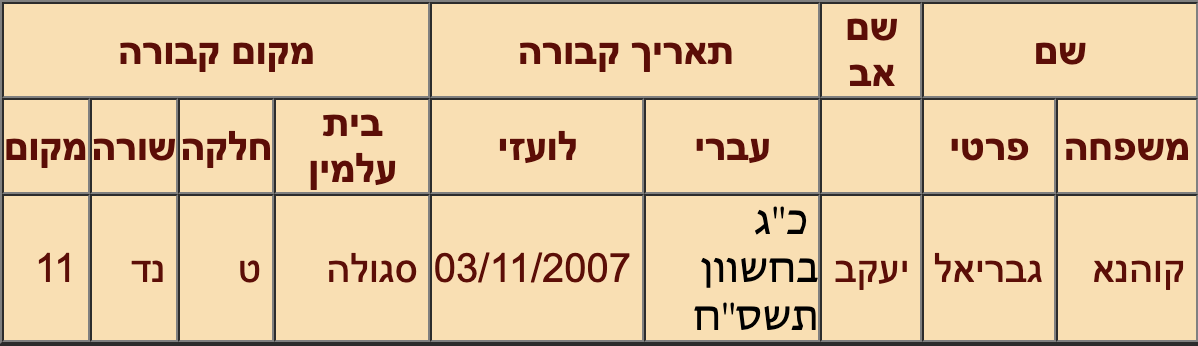 | Individus : CAHANA (COHANA) Israël |