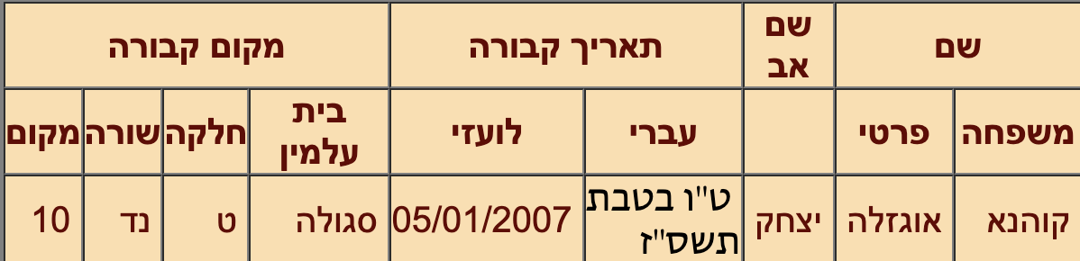 | Individus : COHANA Tzion |
