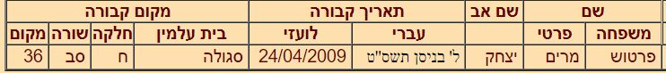 | Individus : PARTOUCHE Yitzhak |
