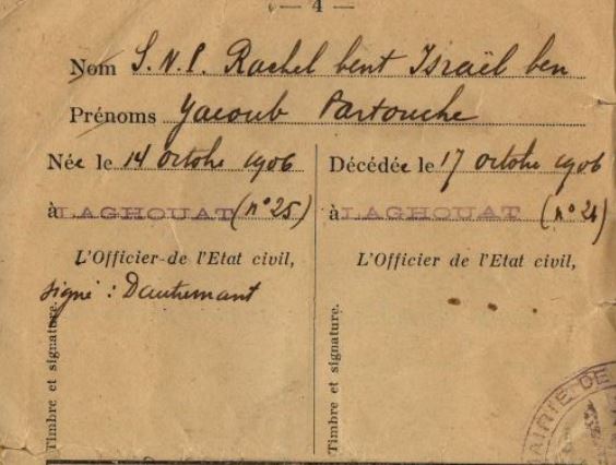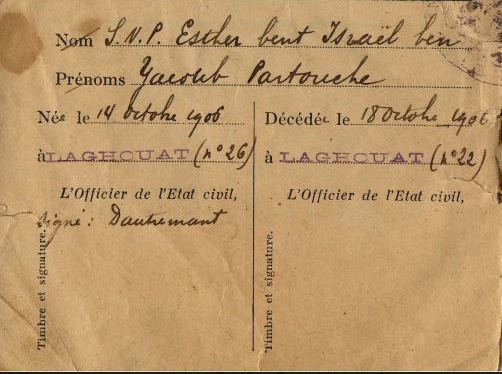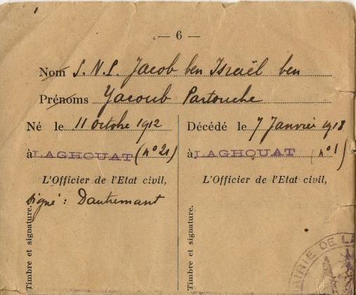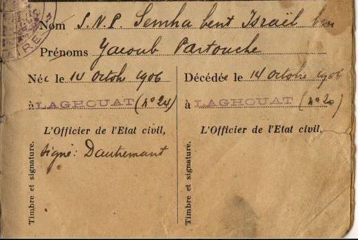 | Individus : PARTOUCHE Jacob Yaakov |